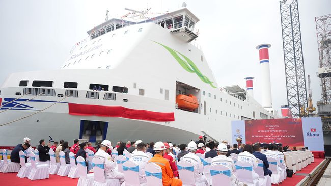 Nybygge. Under torsdagen döptes Stena Connecta, det andra av Stena Lines två specialbyggda fraktfärjor för rederiets trafik på Irländska sjön. Nu väntar snart resan hem till Europa från Kina.