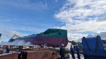 Sjösättning. Arbetet med att bygga Tjörns Hamnars nya elfärja har nått en milstolpe. Nu har fartygets skrov blivit sjösatt i Polen och bogseras nu till Danmark för färdigställande.