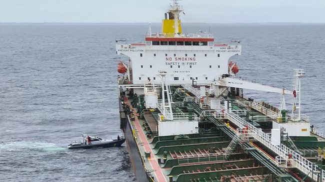 Bordning. Kustbevakningen bordade på fredagen tankfartyget Flora 1 utanför Ystad, misstänkt för ett oljeutsläpp i Östersjön. Fartyget finns på EU:s sanktionslista och har oklar flaggstatus. Två personer misstänks för brott. Utredningar om miljöbrott och bristande sjövärdighet pågår.