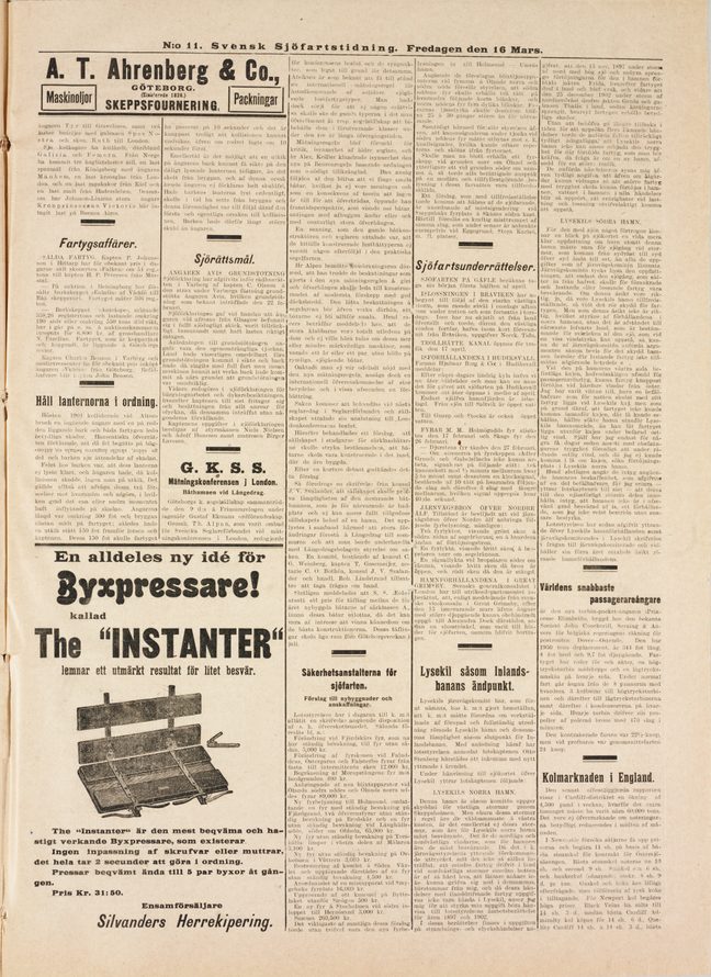 Tidningssida från 1906. Ur Sjöfartstidningens arkiv.