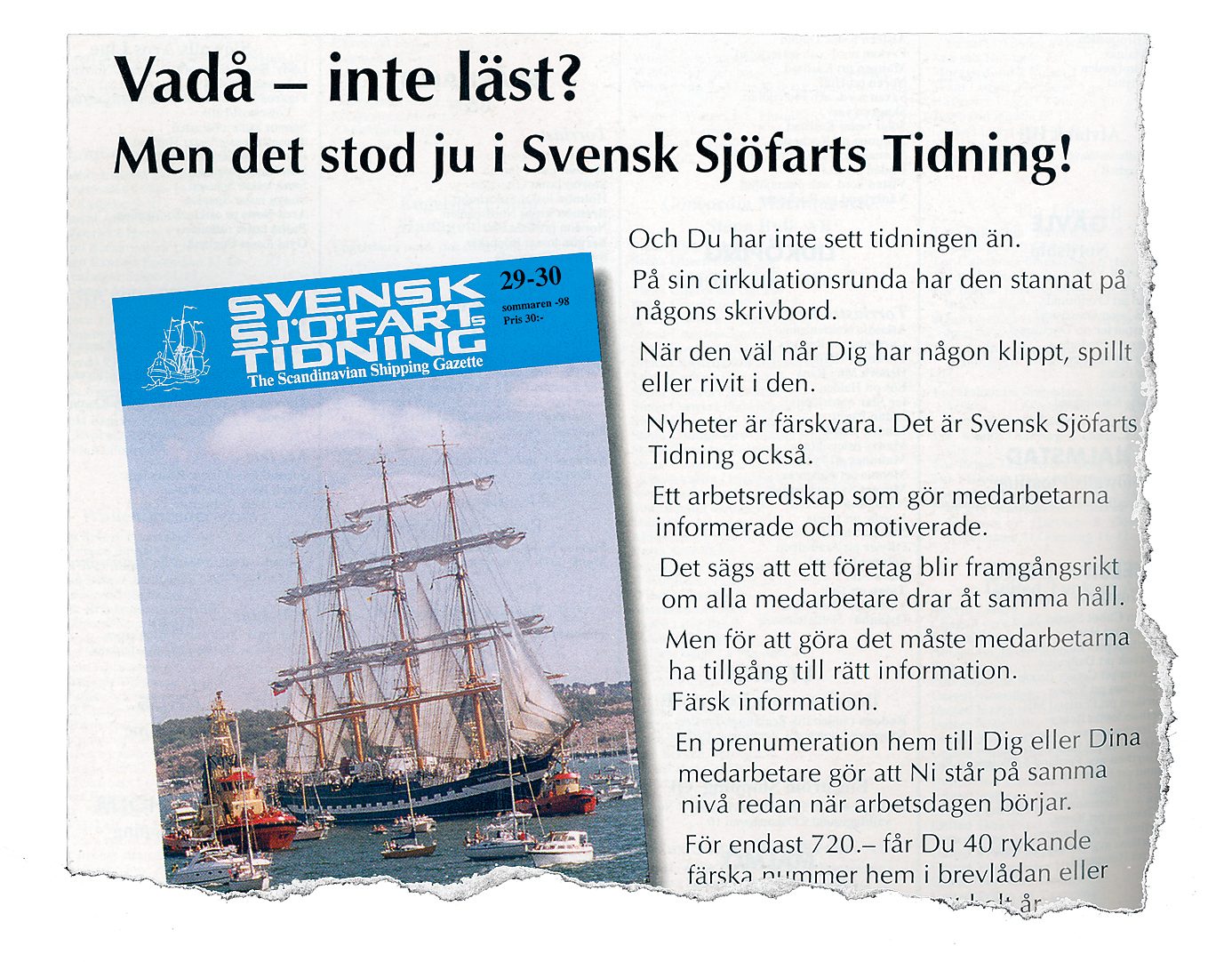 Annons från 1998. Ur Sjöfartstidningens arkiv.