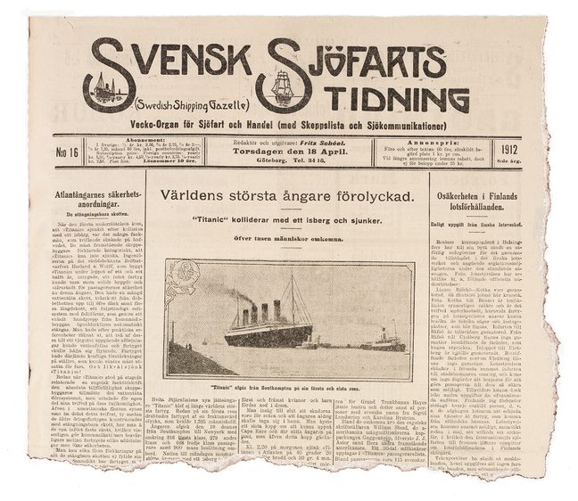 I ett nummer från 1915 rapporteras att Broströmsångaren England kapats ”af tyskarne” och förts till Stettin. Ångaren var på väg från Göteborg till Stockholm med majs. ”Tyskarna ha ej gifvit något skäl för sitt tilltag. Man kan förmoda att de vilja undersöka lasten i afsikt att förvissa sig om att ej något krigskontraband finnes i den”, skriver Svensk Sjöfarts Tidning.