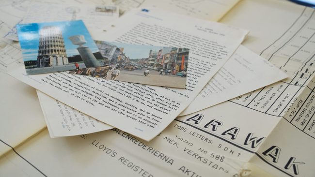 ”Ashdod, Israel den 10 maj 1975. Nu ligger vi här och lastar apelsiner och grapefrukt. Imorgon skall vi fara igen. Först blir det Bordeaux och sedan en hamn i England. Hälsningar från kapten Jack.”