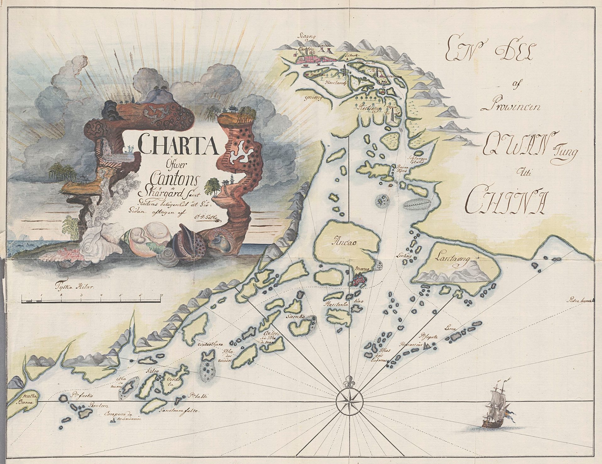 Det gör han i sin Dagbok hållen på resan till Ost Indien, som samtidigt är ett bevis på hans talang som tecknare. I dokumentet – som finns i Kungliga Bibliotekets förvar – ingår 20 handkolorerade planscher och en karta över Pärlflodens mynning nära Canton, som sedan urminnes tid var startpunkt för ”sidenvägen till havs”.