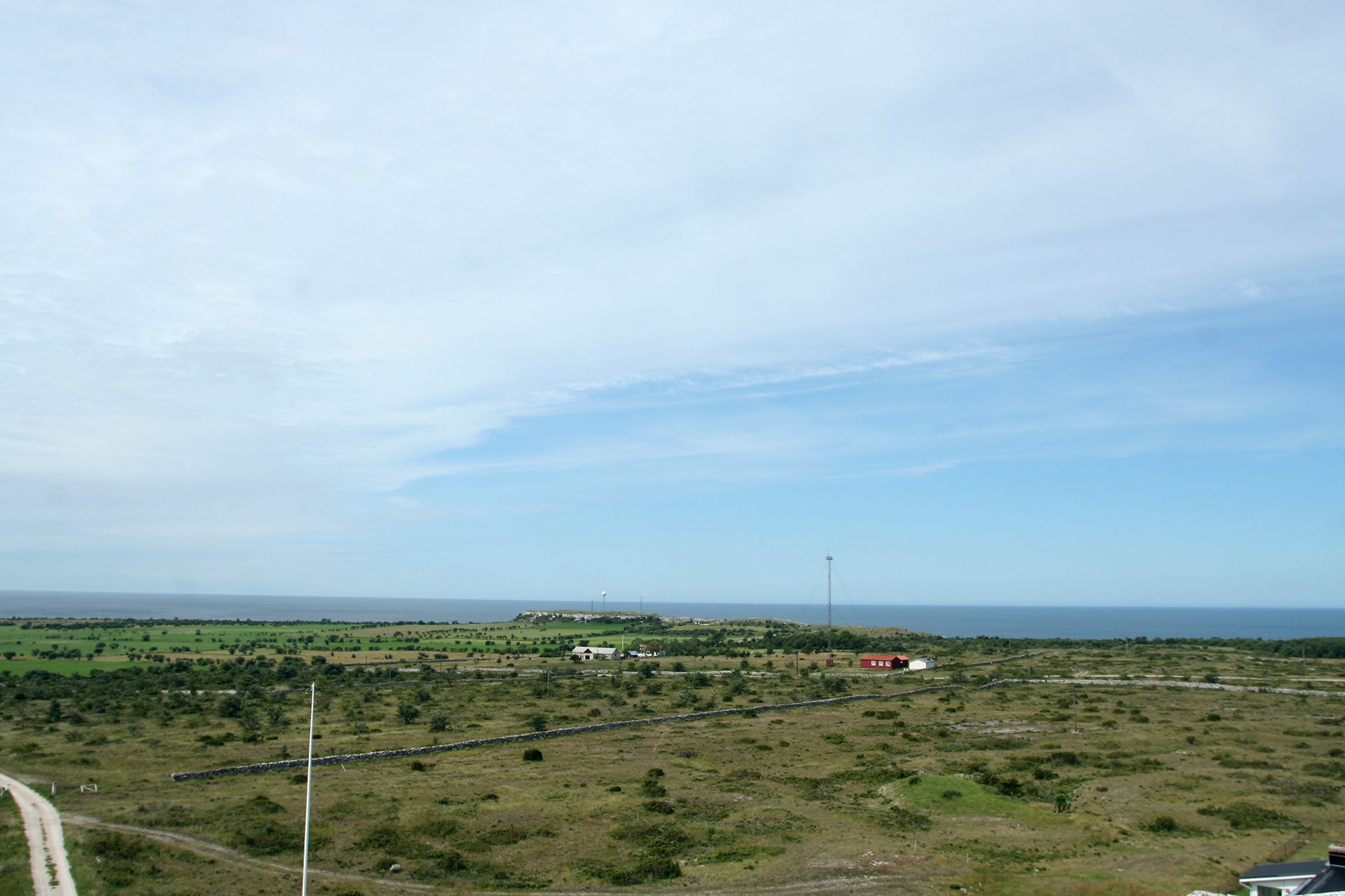 Fyrplatsen kringgärdas av en för Gotland typisk stengärdsgård, som här i syd kallas vast. En stätta leder över ett stängsel.