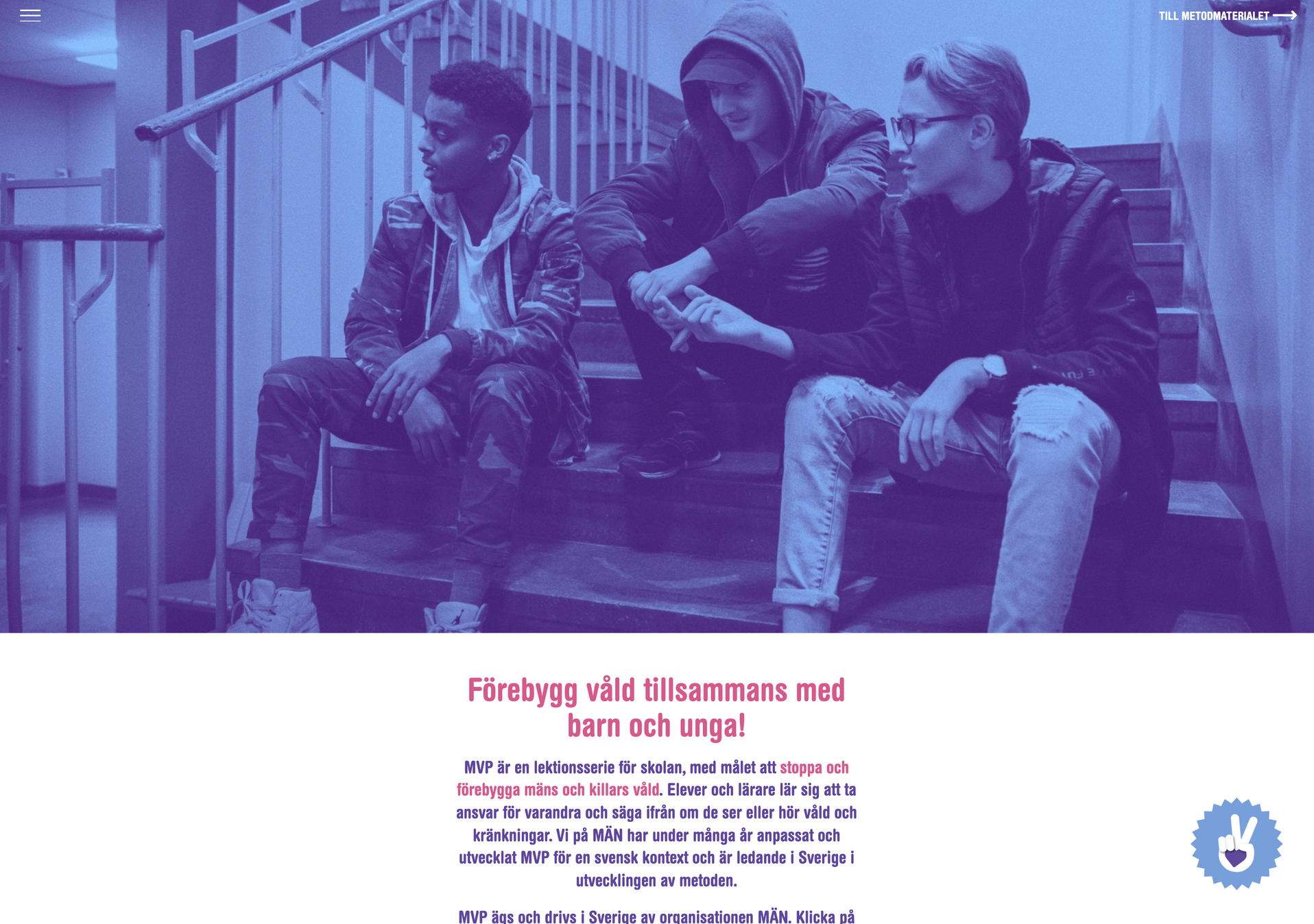 Mentorer i våldsprevention (MVP) är en metod som utvecklats av just MÄN i Sverige. De har skolor och kommuner som främsta målgrupper men börjar också vända sig till vuxna i arbetslivet. En del av vårt pilotprojekt är att anpassa materialet.