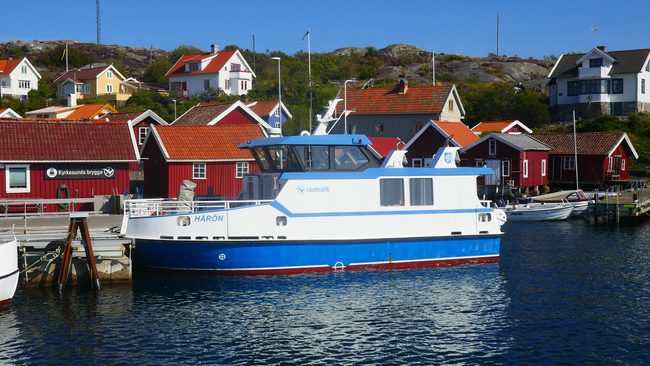 I de skyddade vattnen mellan Kyrkesund på Tjörn och Härön har en av Sveriges minsta färjor nu fått ett nytt liv genom att ha tagit ett kliv in i den elektriska eran.