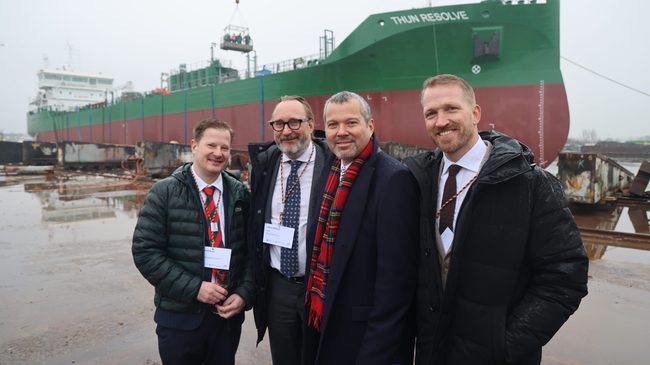 Sjösättning. Under torsdagen sjösatte Erik Thun Group sitt senaste nybygge, produkttankern Thun Resolve, på varvet Ferus Smit i tyska Leer. En av de 120 inbjudna gästerna var IMO:s generalsekreterare Arsenio Dominguez.