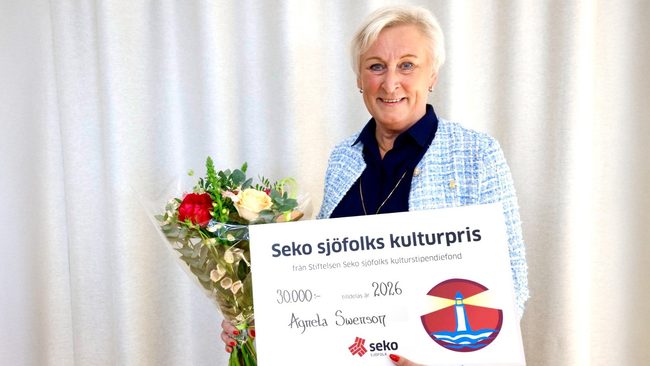 Agneta Swenson har tilldelats Seko sjöfolks kulturpris 2026 för sitt mångåriga engagemang för sjömän, främst genom sitt arbete vid Rosenhill Seamen’s Center i Göteborg.