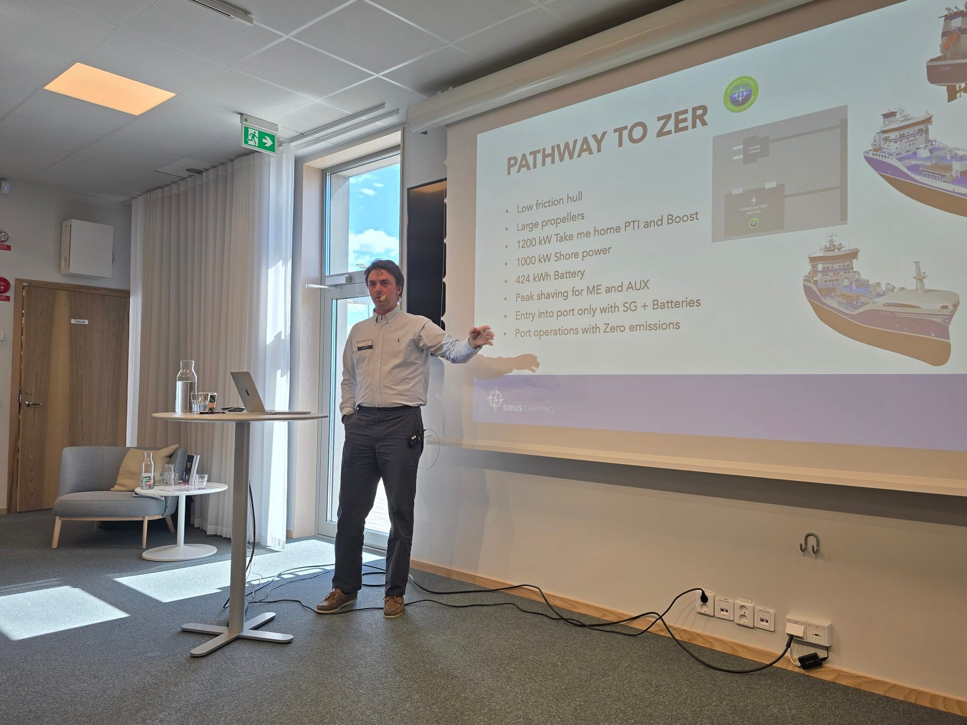 På plats fanns också Donsörederiet Sirius Shipping som är ett av de svenska rederier som satsat på energieffektiva nybyggen de senaste åren. Benjamin Fhager som är Environmental Manager & Technical Coordinator på Sirius pekade också på att deras kunder, de stora energibolagen, också genomgår en grön omställning just nu. Från att i stort sett bara transporterat fossila produkter utgörs nu upp till 50 procent av lasterna av biobränslen.